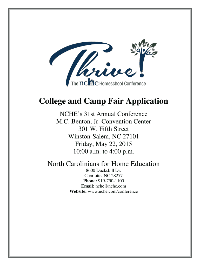 College and Camp Fair Application Inches 31st Annual Conference M.C. Benton, Jr. Convention Center 301 W. Fifth Street Winston-Salem, NC 27101 Friday, May 22, 2015 10:00 a.m. to 4:00 p.m. North Carolinians
