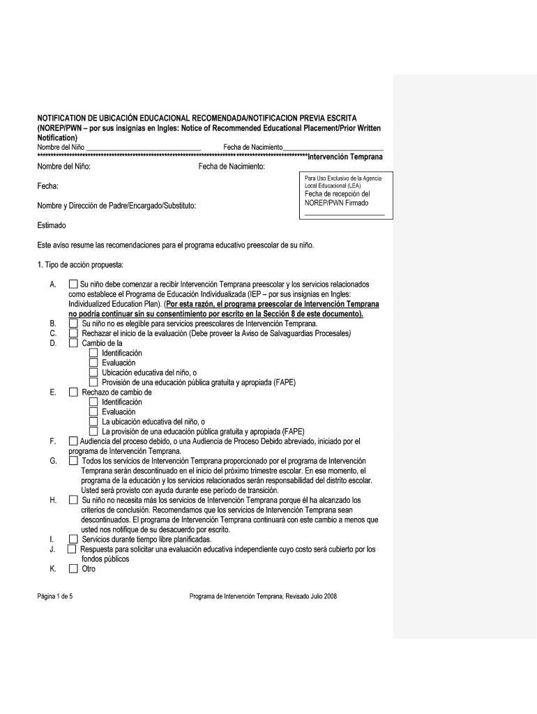 NOTIFICATION DE NIACIN EDUCATIONAL RECOMMENDED/NOTIFICATION PREFIX ESPRIT (NO REP/PWN POR SUS insignia sen Singles: Notice of Recommended Educational Placement/Prior Written Notification) Hombre del