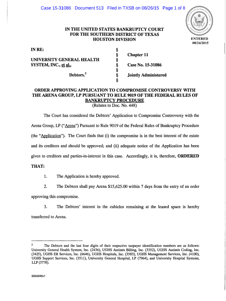 Case 1531086 Document 513 Filed in TSB on 08/26/15-Page 1 of 8 Case 1531086 Document 513 Filed in TSB on 08/26/15-Page 2 of 8 Case 1531086 Document 513 Filed in TSB on 08/26/15-Page 3 of 8 United