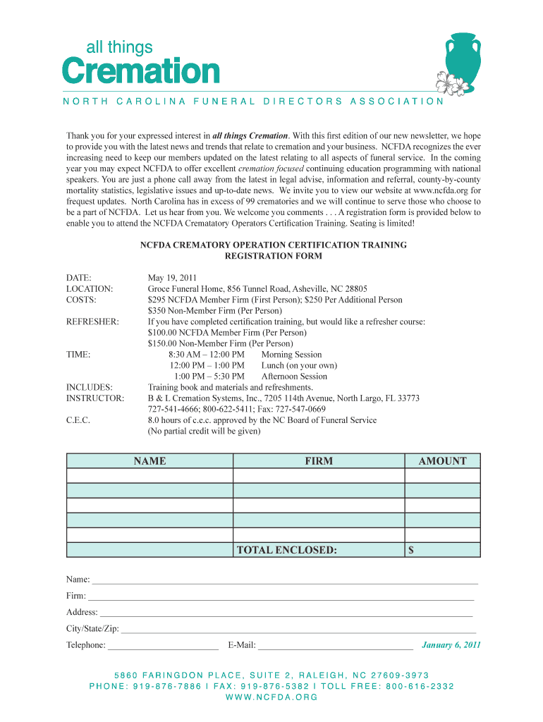 Thank you for your expressed interest in all things Cremation. With this first edition of our new newsletter, we hope