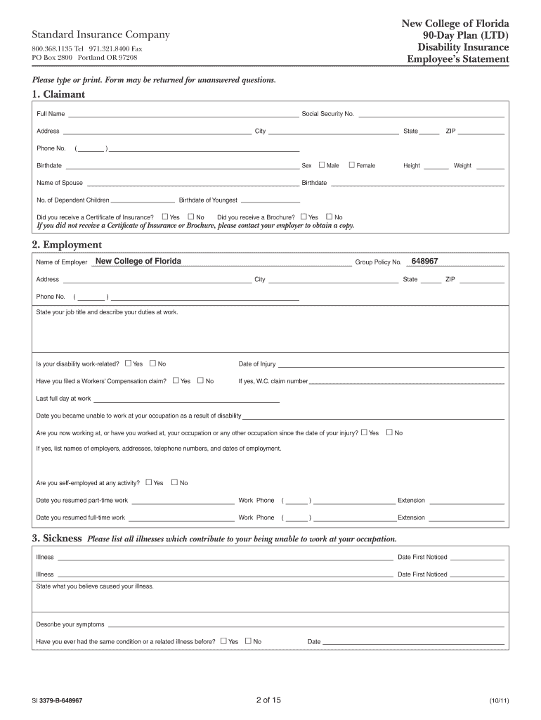 The Standard Insurance Company Disability Benefits Claim Form is essential for employees seeking long-term disability benefits. This document serves as the primary means for claimants to provide the necessary information about their employment, medical history, and specific details related to their disability.