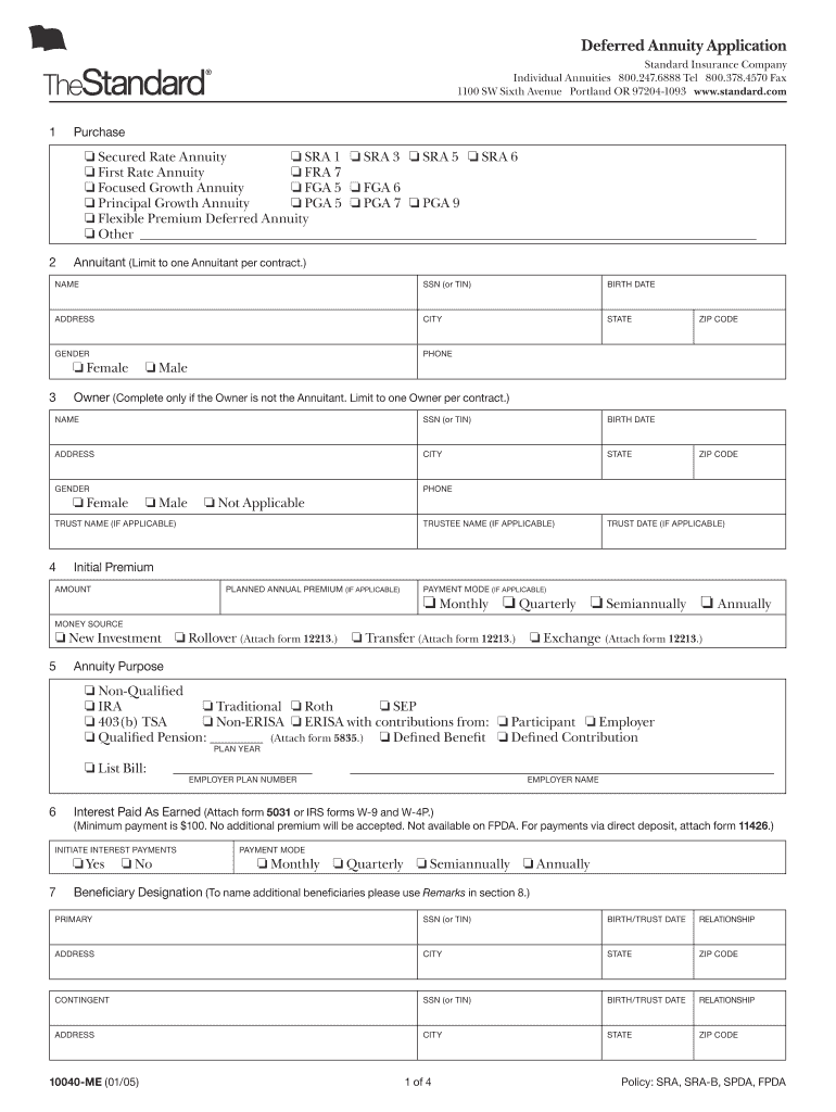 Individuals who are interested in applying for a deferred annuity policy with Standard Insurance Company, including both annuitants and owners, are eligible to complete this form.