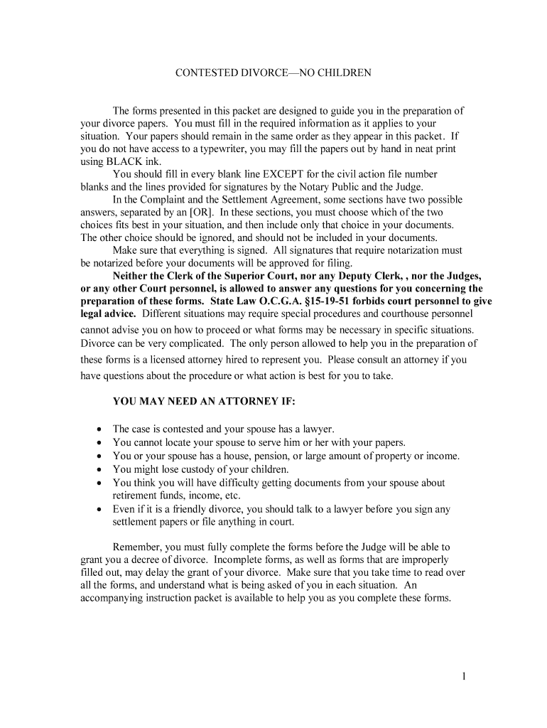 Get the free Contested Divorce No Children Form