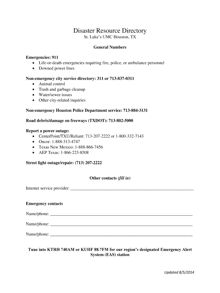 Get the free Disaster Resource Directory - St Lukes Methodist Church - stlukesmethodist