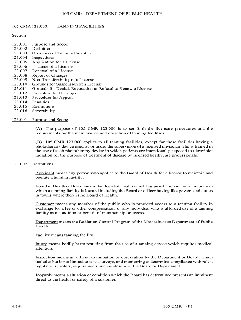 105 CMR: DEPARTMENT OF PUBLIC HEALTH