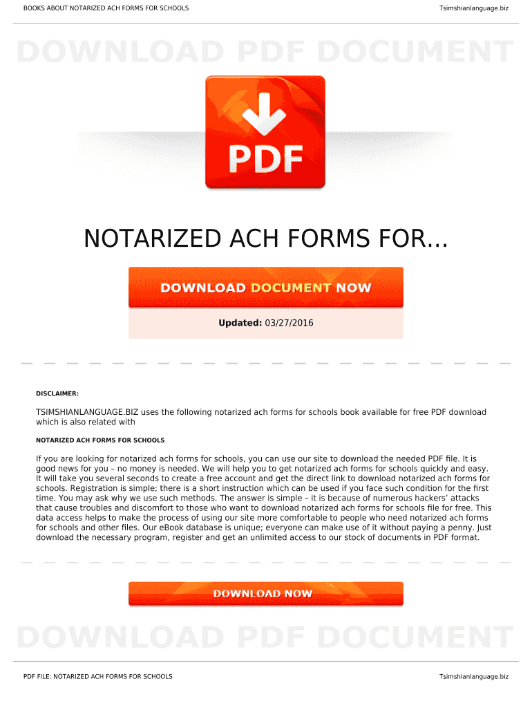 BOOKS ABOUT NOTARIZED ACH FORMS FOR SCHOOLS Tsimshian language.biz NOTARIZED ACH FORMS FOR... Updated: 03/27/2016 DISCLAIMER: TSIMSHIANLANGUAGE.BIZ uses the following notarized ACH forms for schools