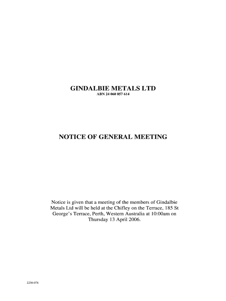Get the free NOTICE OF GENERAL MEETING - Power Creations
