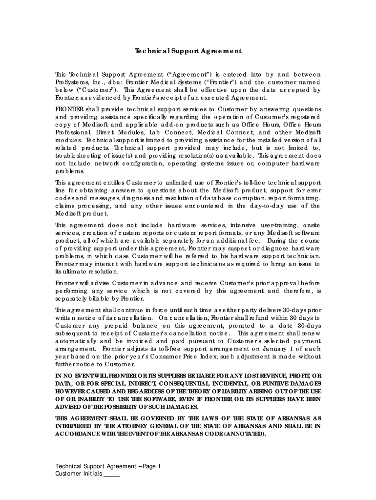 Get the free Technical Support Agreement - Frontier Medical