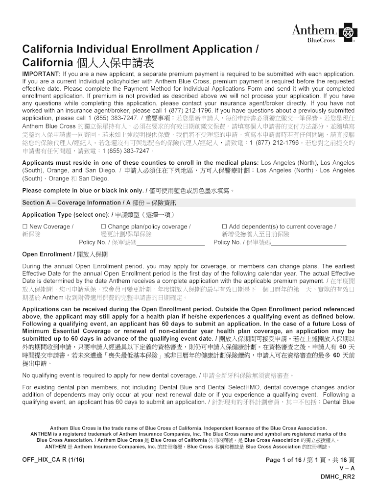 Any individual who is looking to enroll in a health insurance plan in California is required to file a california individual enrollment application.