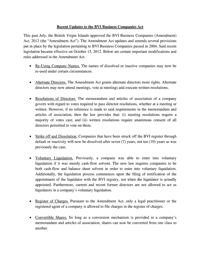 Get the free Recent Updates to the BVI Business Companies Act