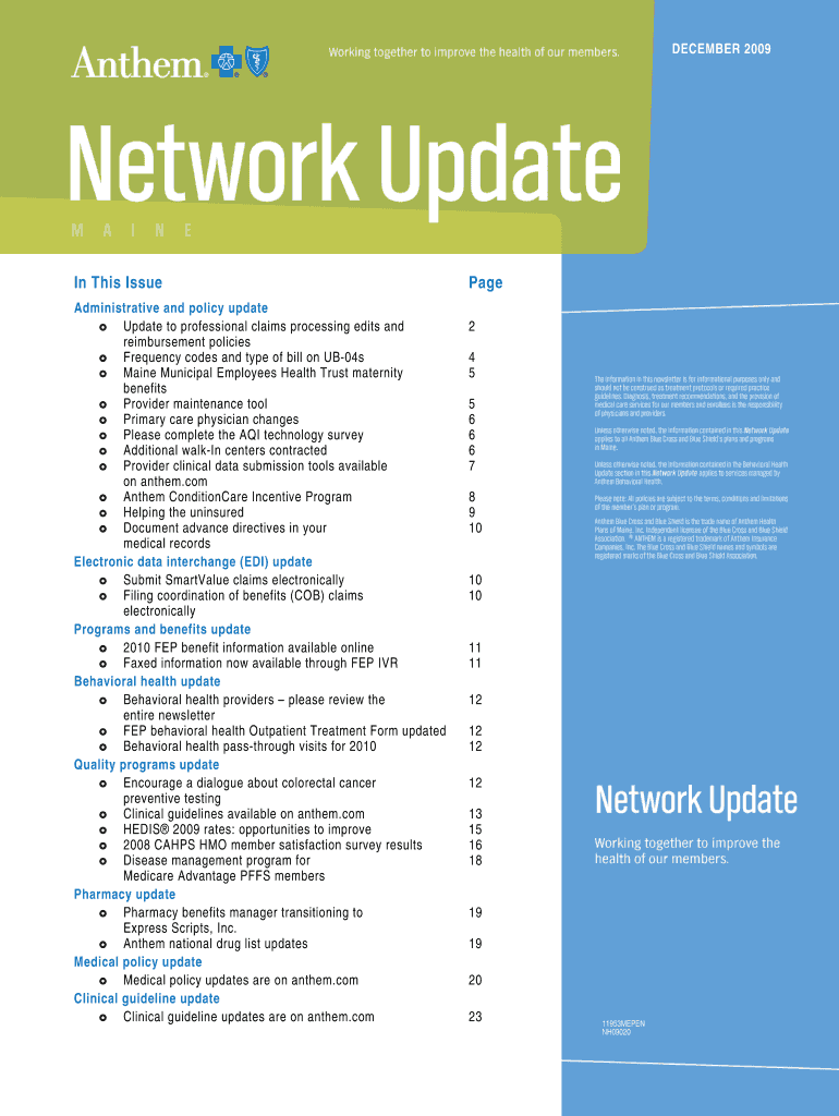 DECEMBER 2009 In This Issue Administrative and policy update to professional claims processing edits and reimbursement policies Frequency codes and type of bill on UB-04s Maine Municipal Employees