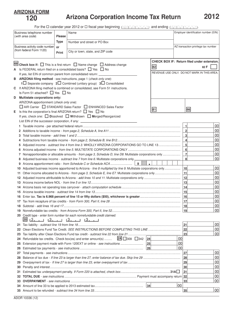 This form is used by corporations to file their income tax return in the state of Arizona for the calendar year 2012 or the fiscal year beginning and ending in that year.