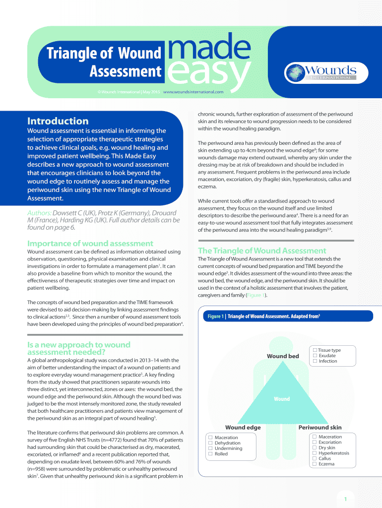 Triangle of Wound Assessmentmadeeasy Wounds International May 2015 www.woundsinternational.comIntroductionWound assessment is essential in informing the selection of appropriate therapeutic strategies