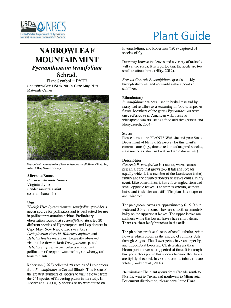 Fill out your narrowleaf mountainmint pycnanformmum tenuifolium online with pdfFiller!