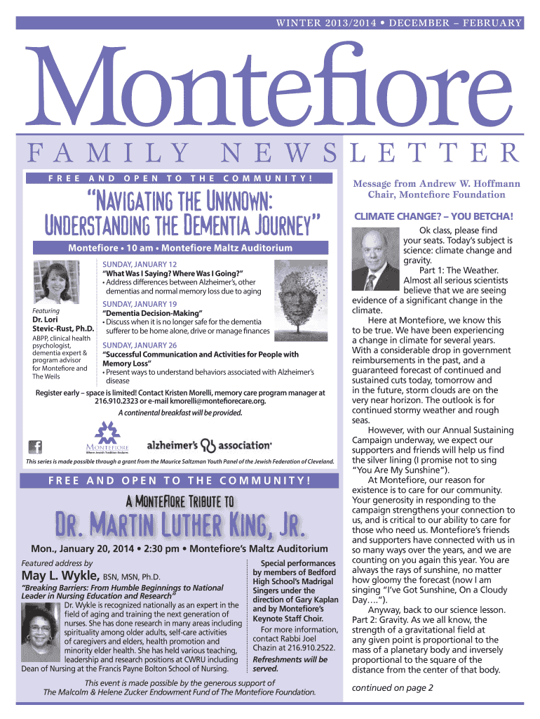 WINTER 2013/2014 DECEMBER FEBRUARY Monte ore FA M I LY F R E E A N D O P E N T O N E W S L E T T E R T H E C O M M U N I T Y ! Navigating the Unknown: Understanding the Dementia Journey Montessori