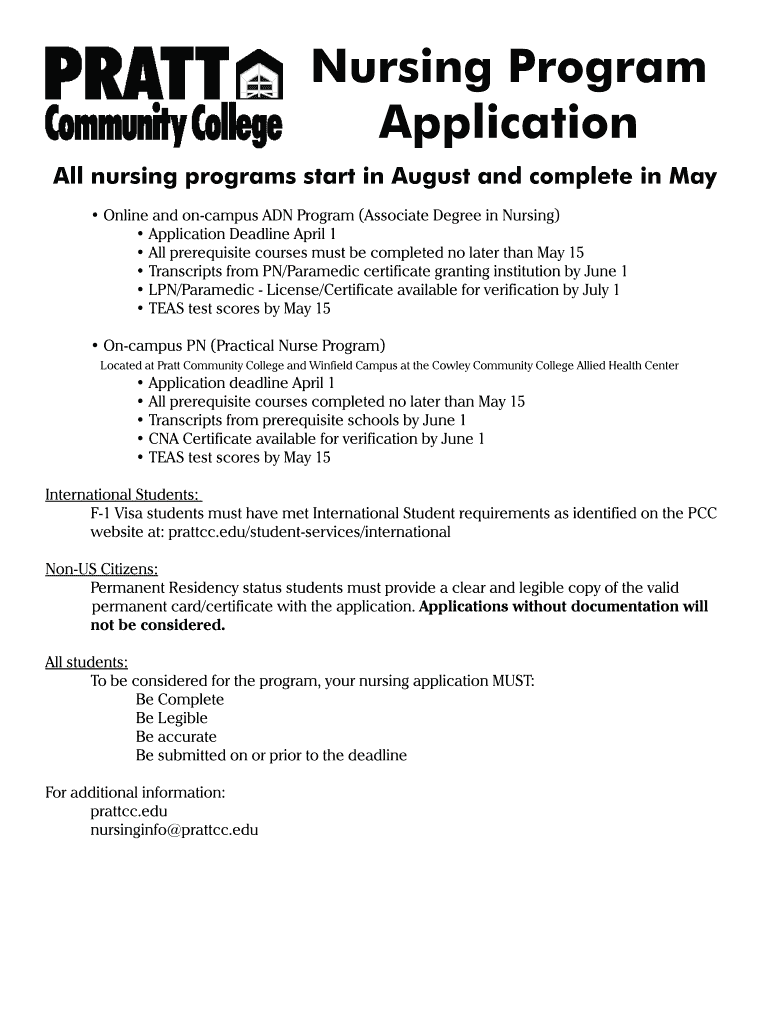 Get the free Nursing Program Application - prattccedu