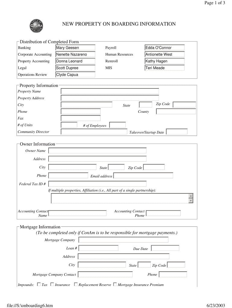 Get the free NEW PROPERTY ON BOARDING INFORMATION - ConAm