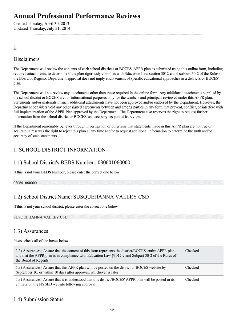 Annual Professional Performance Reviews Created Tuesday, April 30, 2013, Updated Thursday, July 31, 2014 1 Disclaimers The Department will review the contents of each school district's or BONES APPR