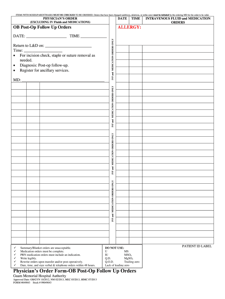 Get the free OB PostOp Follow Up Orders