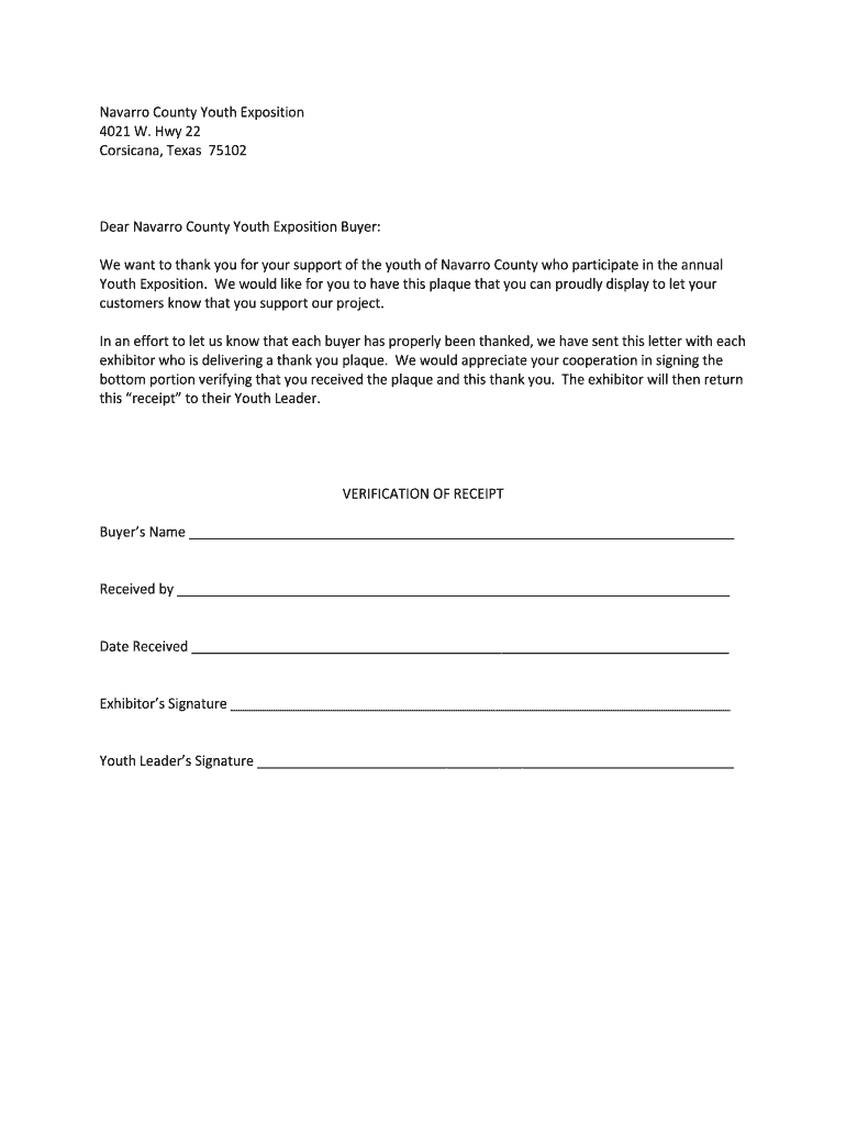 Navarro County Youth Exposition 4021 W. Hwy 22 Corsican, Texas 75102 Dear Navarro County Youth Exposition Buyer: We want to thank you for your support of the youth of Navarro County who participate