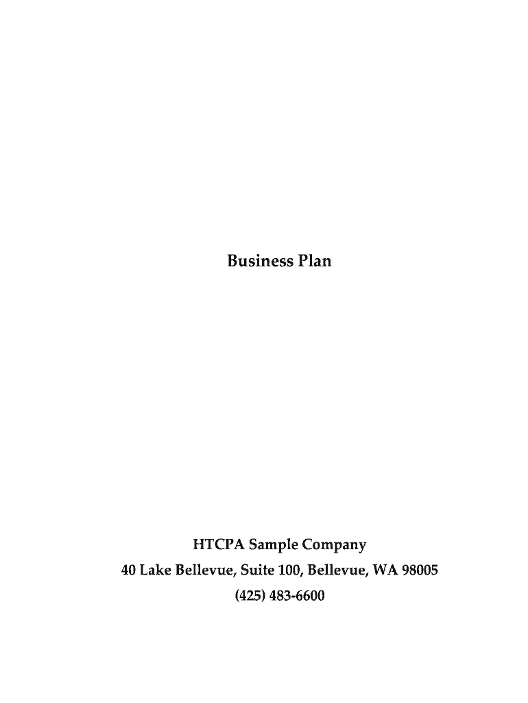 This document is a business plan for HTCPA Sample Company, outlining its objectives, mission, company summary, services, market analysis, strategy, management plan, and financial projections.