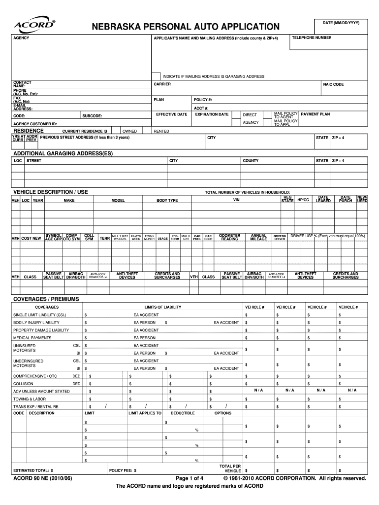 How to fill out nebraska personal auto application