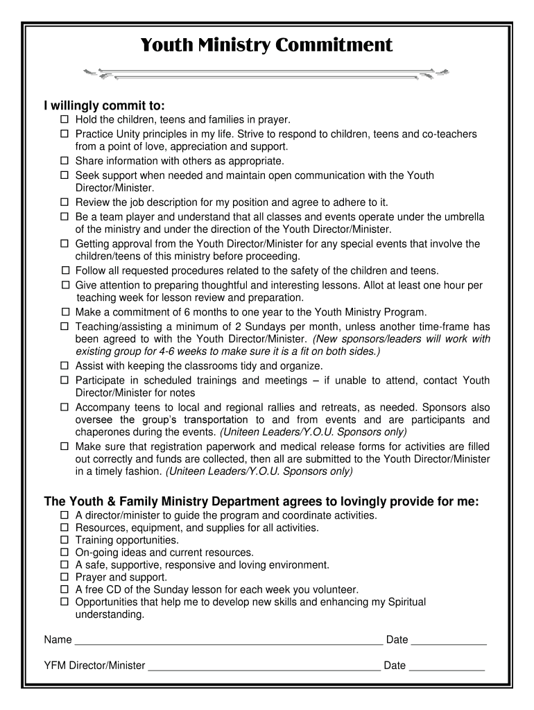 Get the free Youth Ministry Commitment - Unity Northwest Church