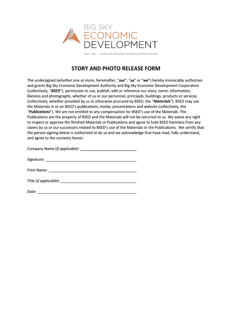 Get the free BSED Story and Photo Release Form - Big Sky Economic - bigskyeconomicdevelopment