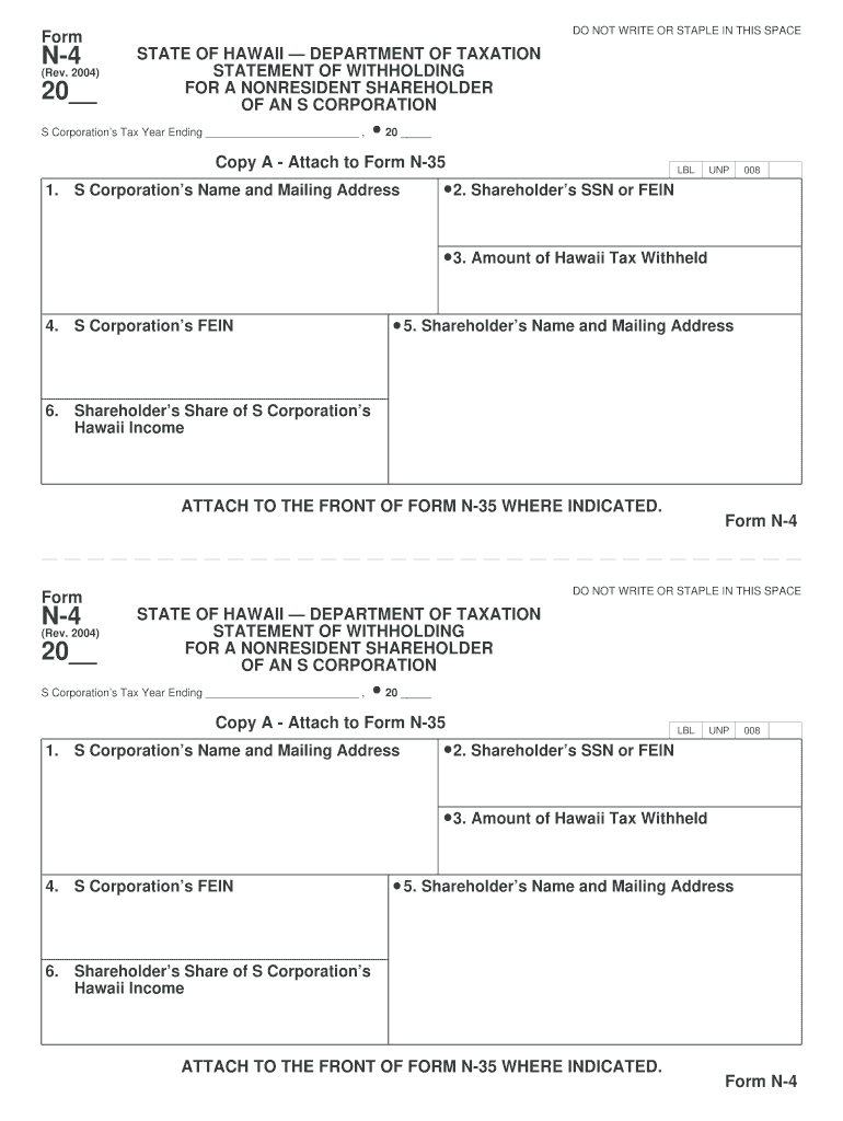 This form is used to report the withholding tax for nonresident shareholders of an S corporation in Hawaii.