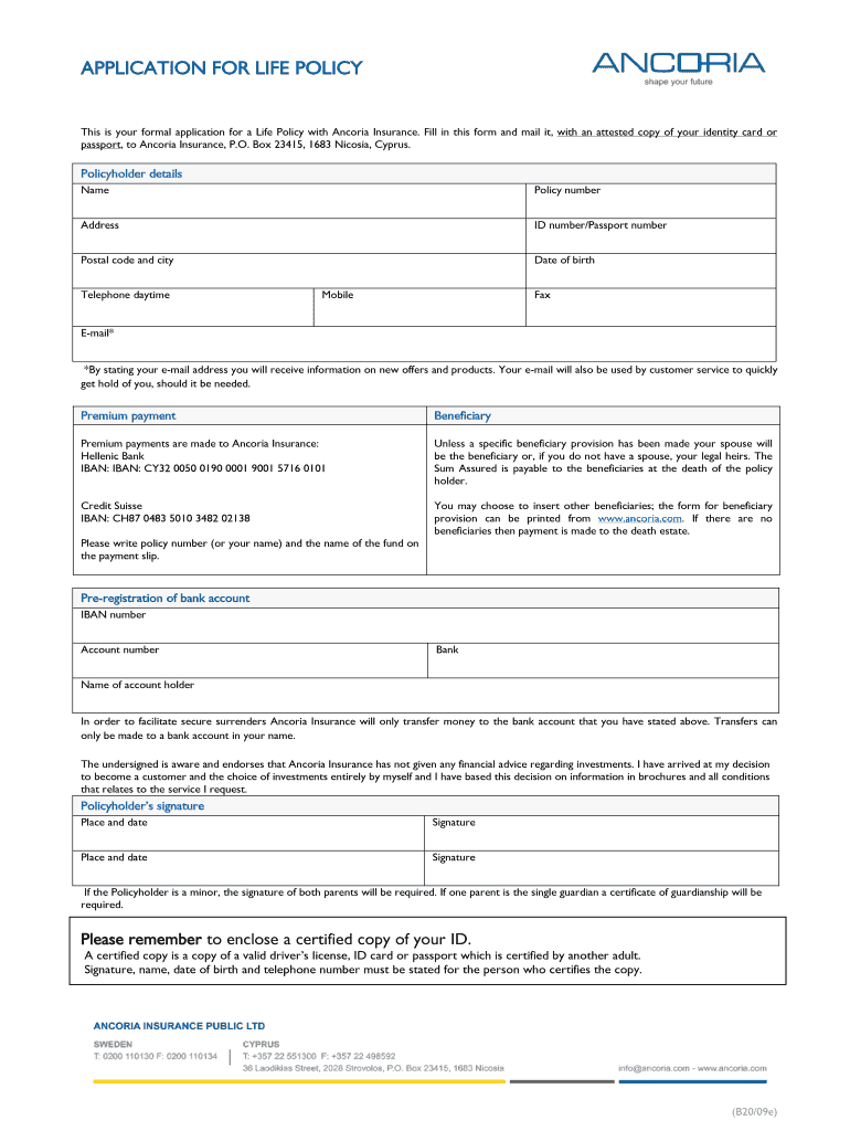 To be eligible to fill out the Life Policy Application Form, you must be of legal age in Cyprus and able to provide personal identification, such as a certified copy of your ID or passport.