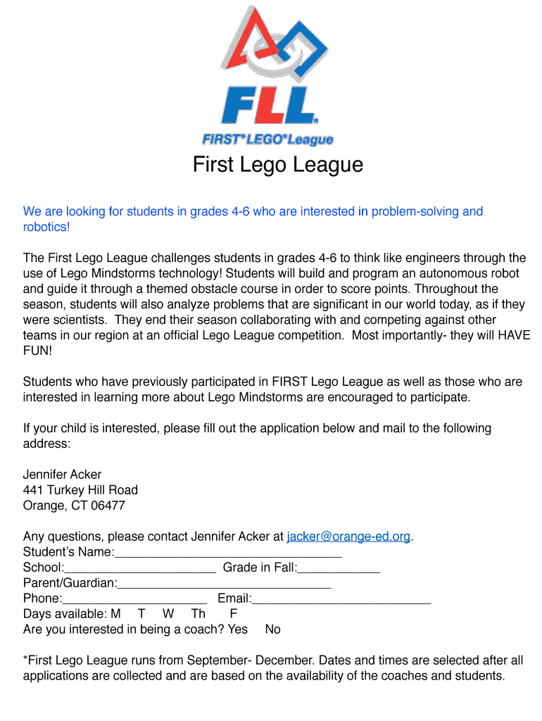 First Lego League is not the form you're looking for?Search for another form here.