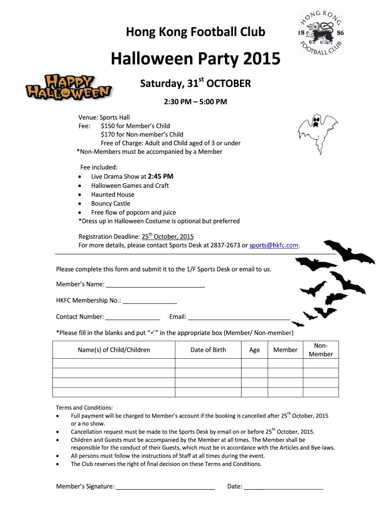 All members and guests attending the Halloween party - hkfc are required to fill out a registration form.