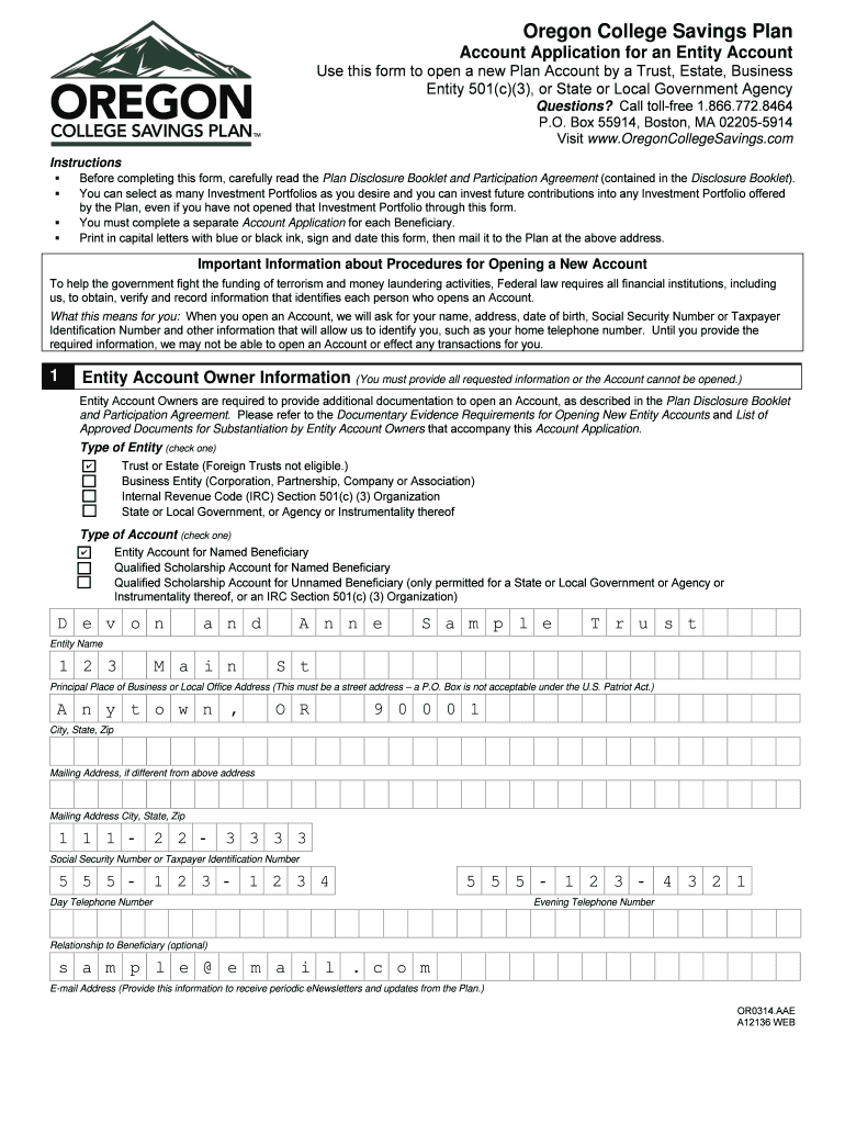Get the free Oregon College Savings Plan Entity Account Application