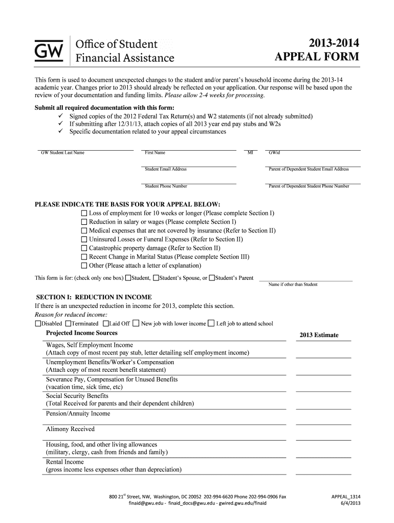 Get the free 2013-2014 APPEAL FORM - George Washington University