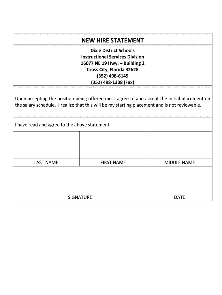Get the free NEW HIRE STATEMENT - apluswebdixiek12flus - aplusweb dixie k12 fl