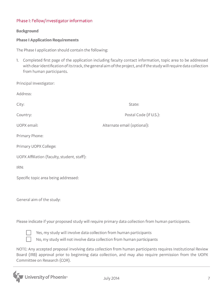 Get the free Request for Fellow Proposals - research phoenix
