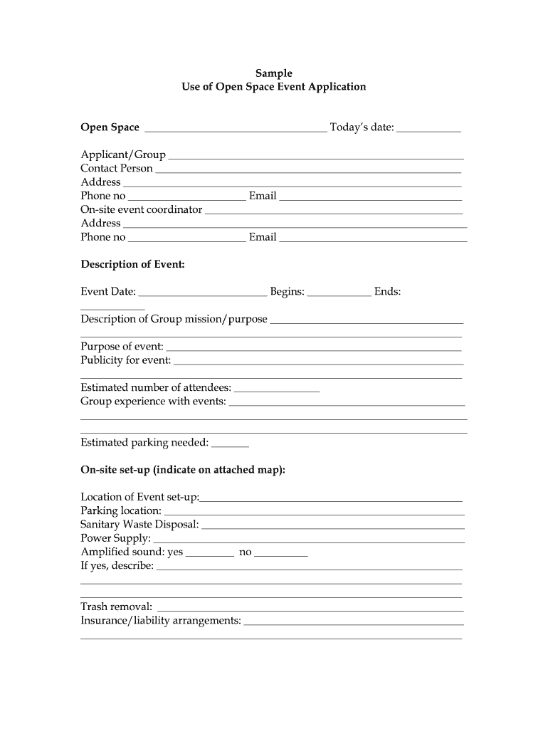 To fill out the Use of Open Space Event Application, applicants must provide details including the event name, date and time, location, expected attendance, type of activities, and any necessary permits or insurance.