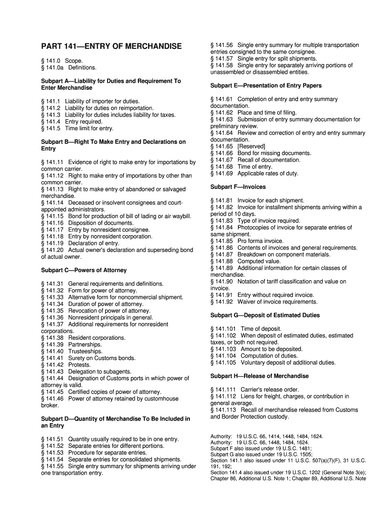 Get the free PART 141—ENTRY OF MERCHANDISE