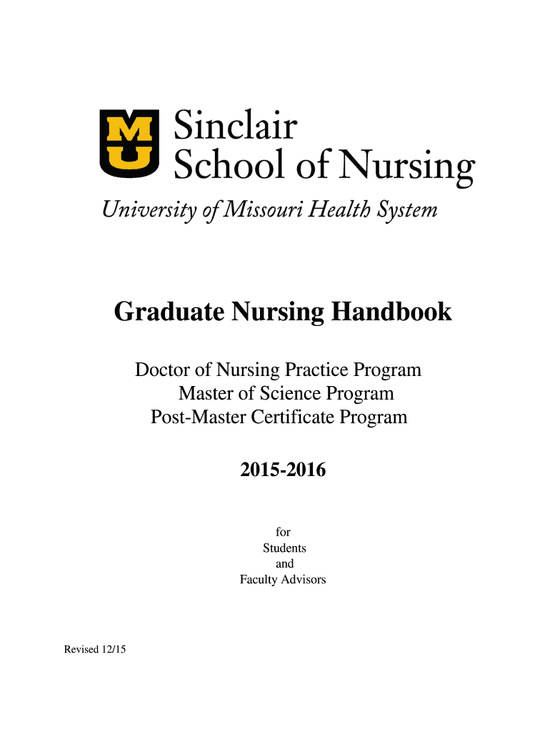 Get the free Graduate Nursing Handbook - Sinclair School of Nursing - nursing missouri