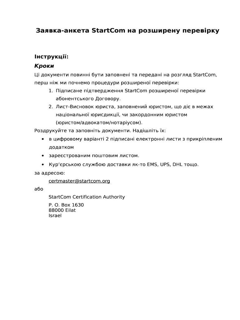 The StartCom Extended Validation Application serves as a crucial legal document that enables organizations to apply for Extended Validation Certificates. This application is essential for establishing trust and credibility online, particularly for businesses engaged in sensitive transactions such as e-commerce and finance. Extended Validation Certificates provide a higher level of assurance to customers, confirming the legitimacy of a website.