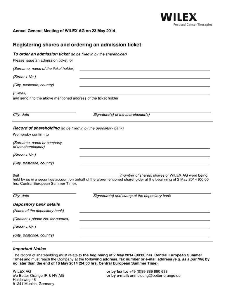 Get the free Registering shares and ordering an admission ticket WILEX AGdoc - wilex