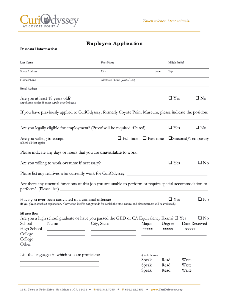 Get the free Employee Application - CuriOdyssey