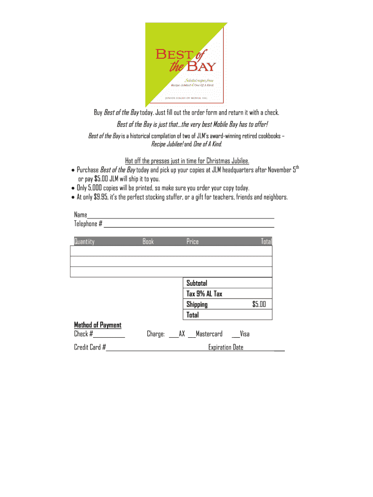 Buy Best of the Bay today. Just fill out the order form and return it with a check. Best of the Bay is just that the very best Mobile Bay has to offer! Best of the Bay is a historical compilation