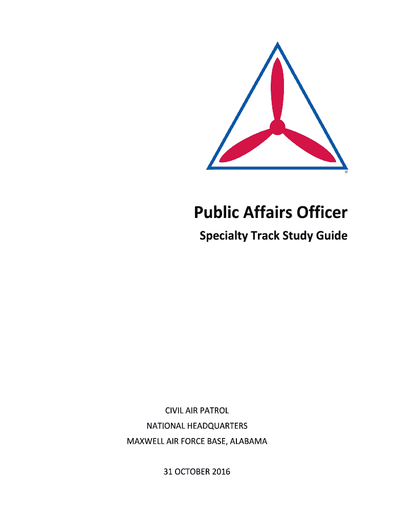 This pamphlet describes the Public Affairs Officer specialty track, including training objectives, requirements for technician, senior, and master ratings, and guidance for on-the-job training.