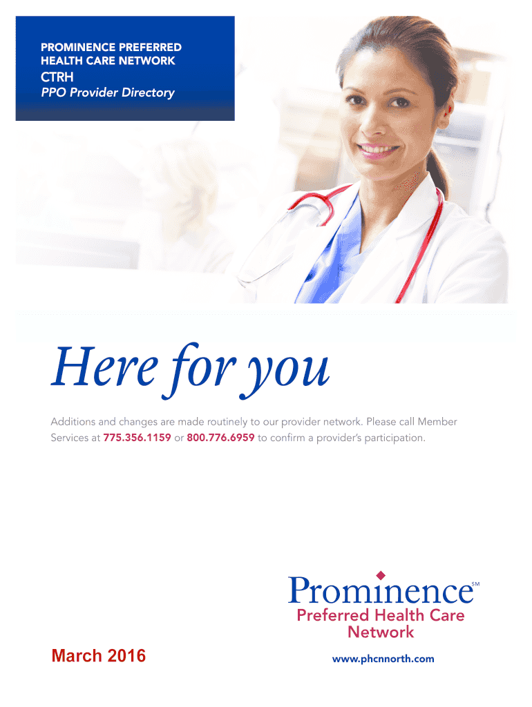 PROMINENCE PREFERRED HEALTH CARE NETWORK CTH PPO Provider Directory Here for your Additions and changes are made routinely to our provider network. Please call Member Services at 775.356.1159 or 800.776.6959