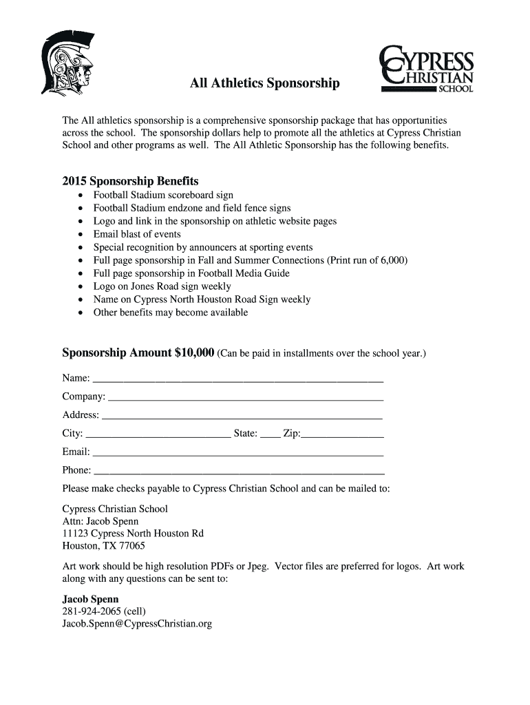 Get the free All Athletics Sponsorship - athletics cypresschristian