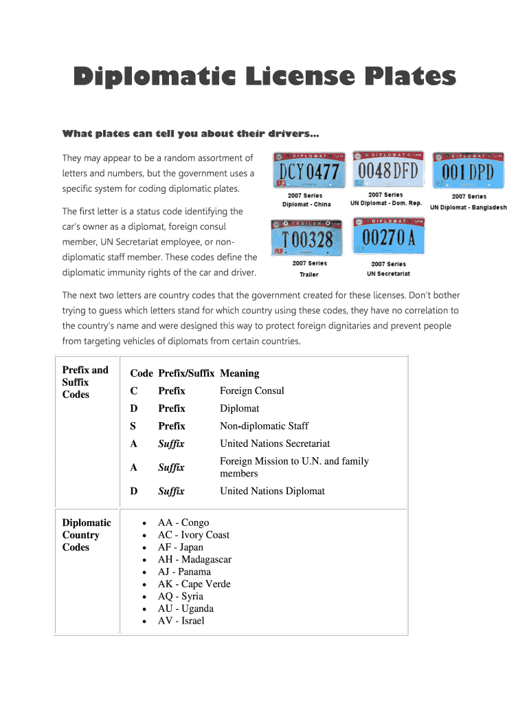 How to fill out diplomatic license plates?