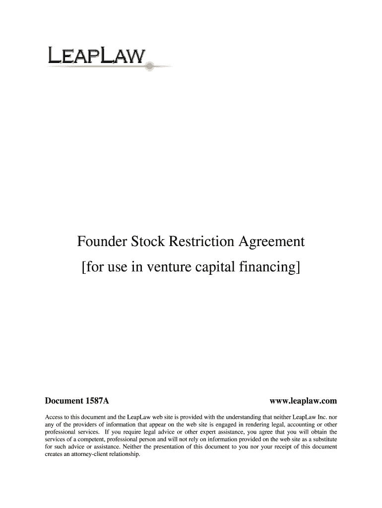 Founder Stock Restriction Agreement for use in venture capital financing Document 1587Awww. Leap law. Access to this document and the Leap website is provided with the understanding that neither Leap