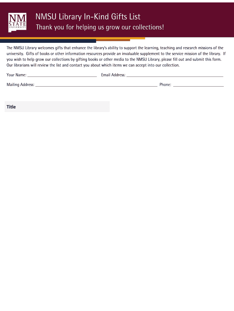 Fill out your nmsu library in-kind gifts online with pdfFiller!