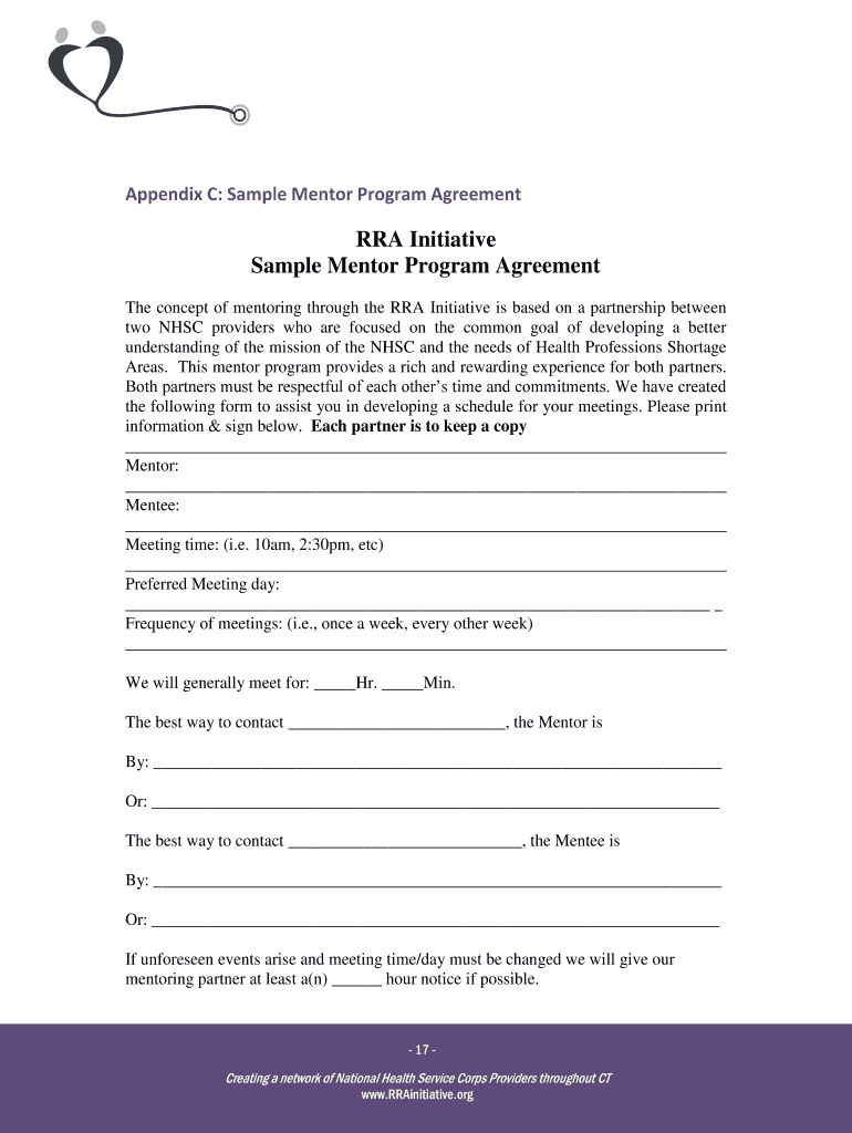 Get the free RRA Initiative Sample Mentor Program Agreement - rrainitiative